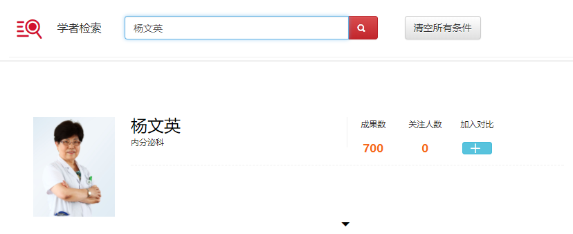 系统通过规则把成果与学者进行了精准匹配,搜索中文学者名称即可查询该学者的所有成果与分析。如图3-23。