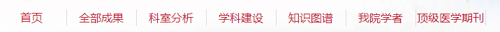 普通用户导航栏菜单包括首页、全部成果、科室分析、学科建设(管理员设置前台显示/不显示)、知识图谱、我院学者、顶级医学期刊(管理员自定义),使用户可以快速定位到不同的页面。如图3-1。