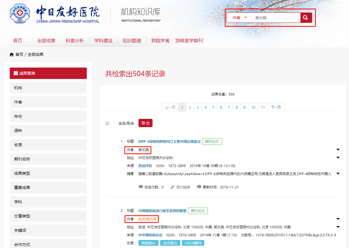 1.为什么我在学者格式里面输入学者名称(如“杨文英”),搜索出的结果是成果列表而不是学者列表?如下图。